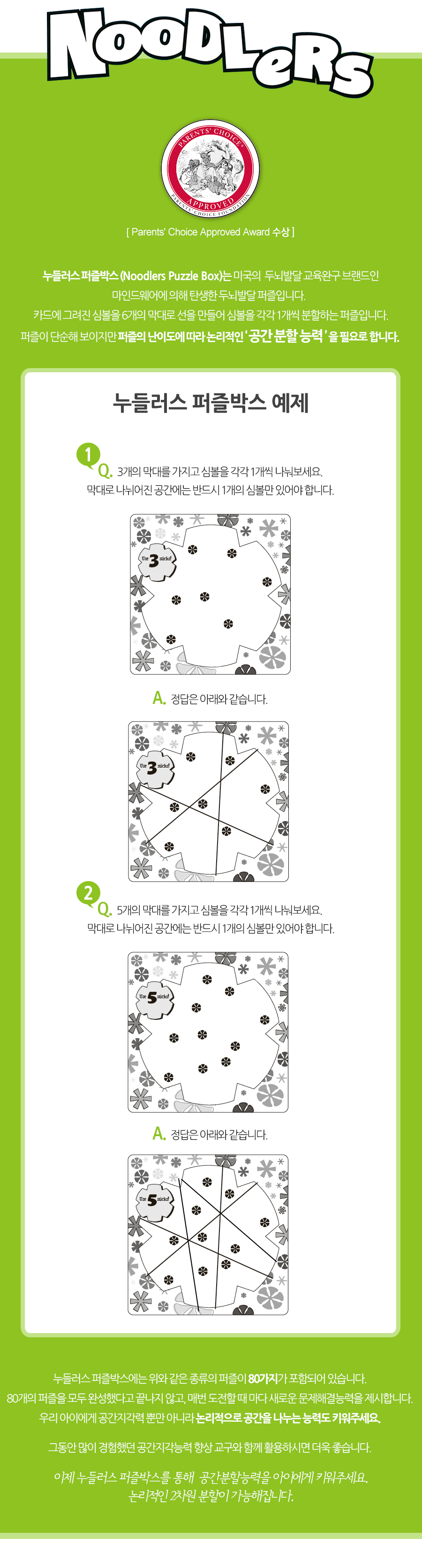 막대를 활용하여 공간분할능력을 키우는 유아동 퍼즐 게임입니다.