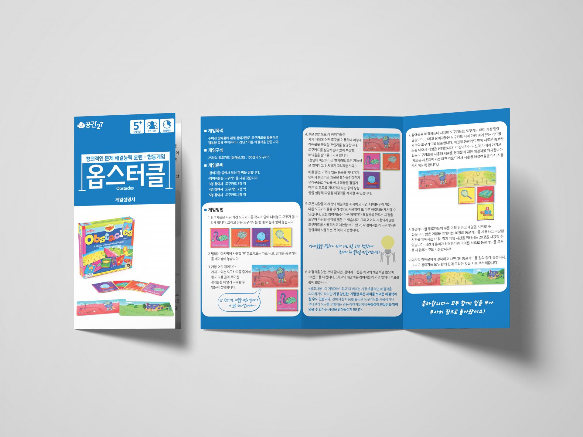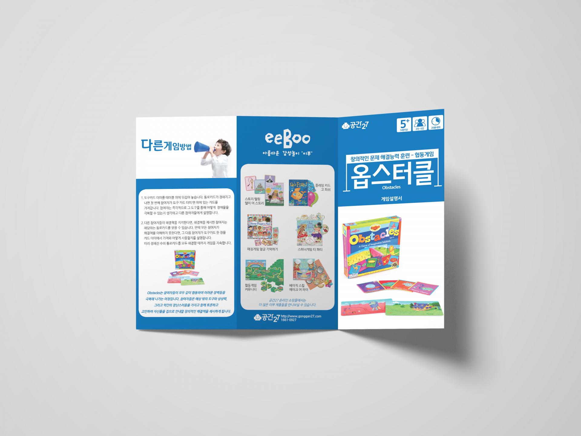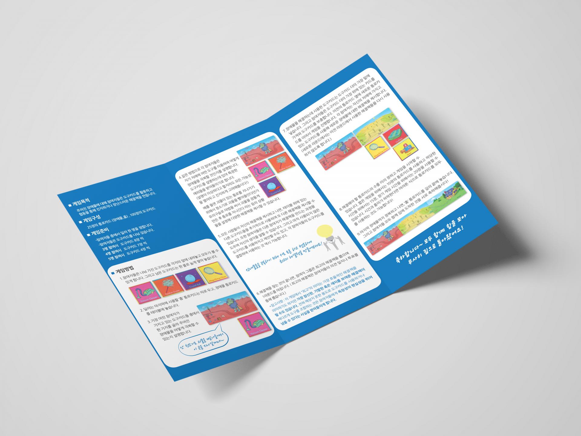 리플렛 메인 표지는 보드게임의 제품 사진을 활용하여 디자인하였고