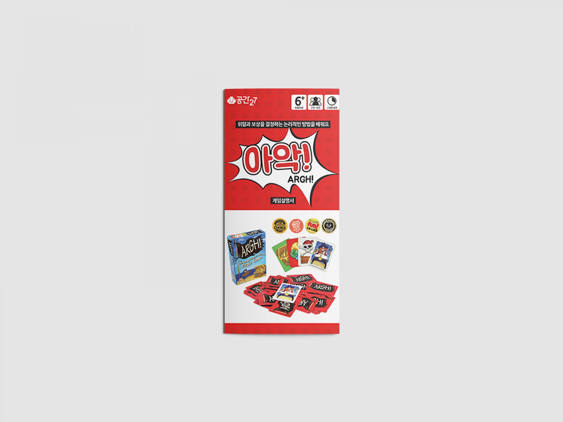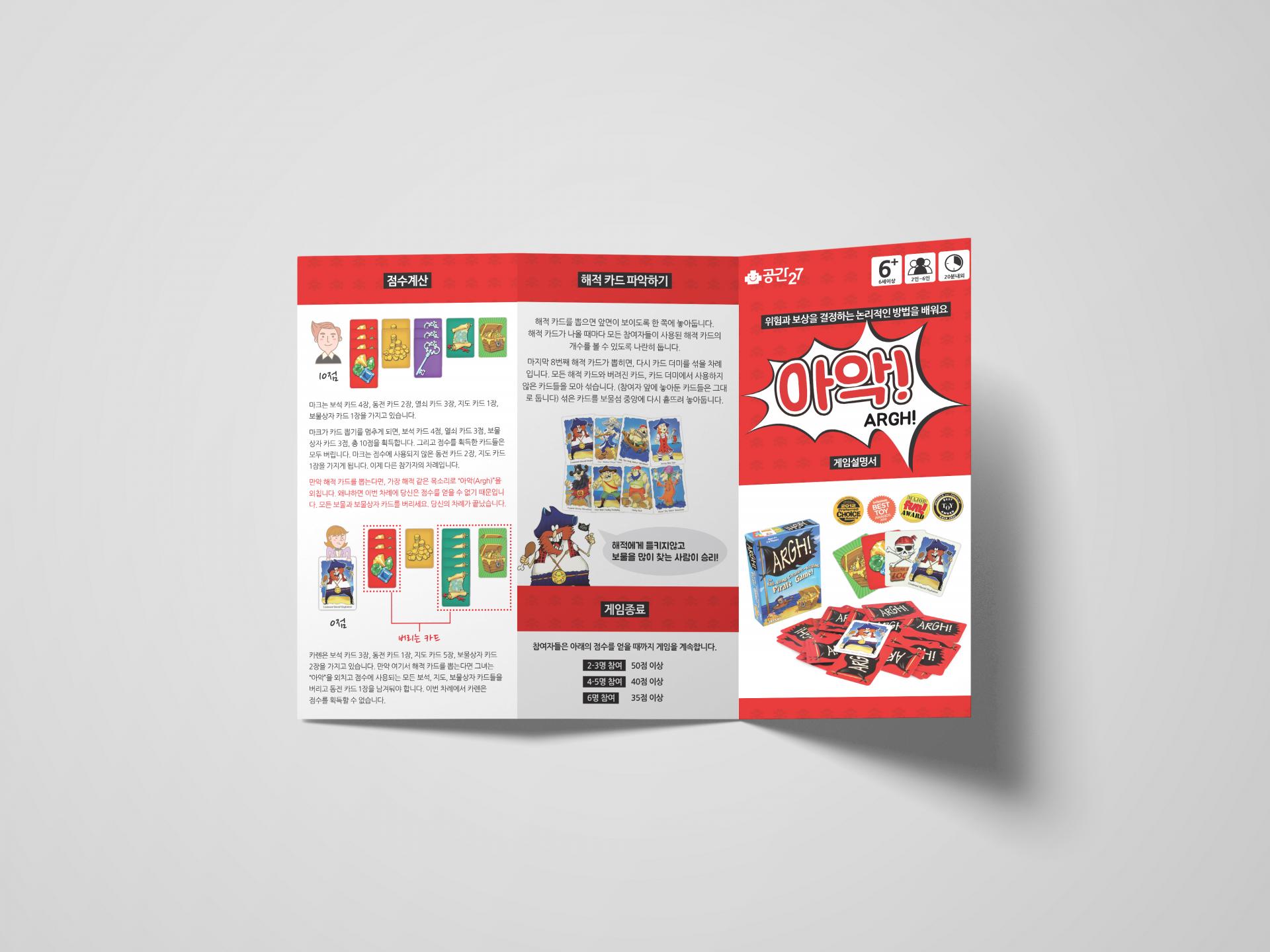 해적이라는 컨셉과 '아악'이라는 상품 타이틀에 맞게 역동감 있고 놀라는 말풍선 느낌의 한글 타이틀을 활용하였습니다.