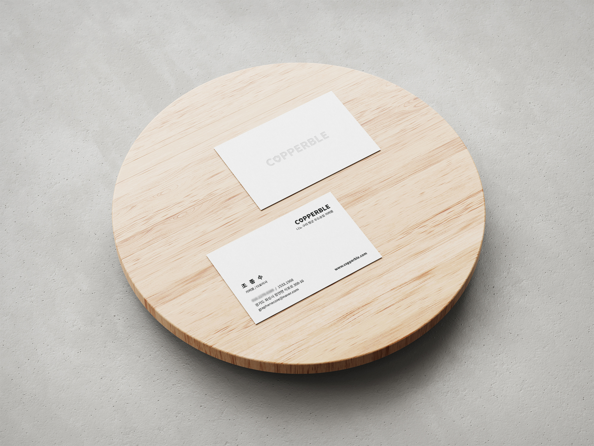 음각 형압을 새긴 명함을 통해 구리 항균 가구라는