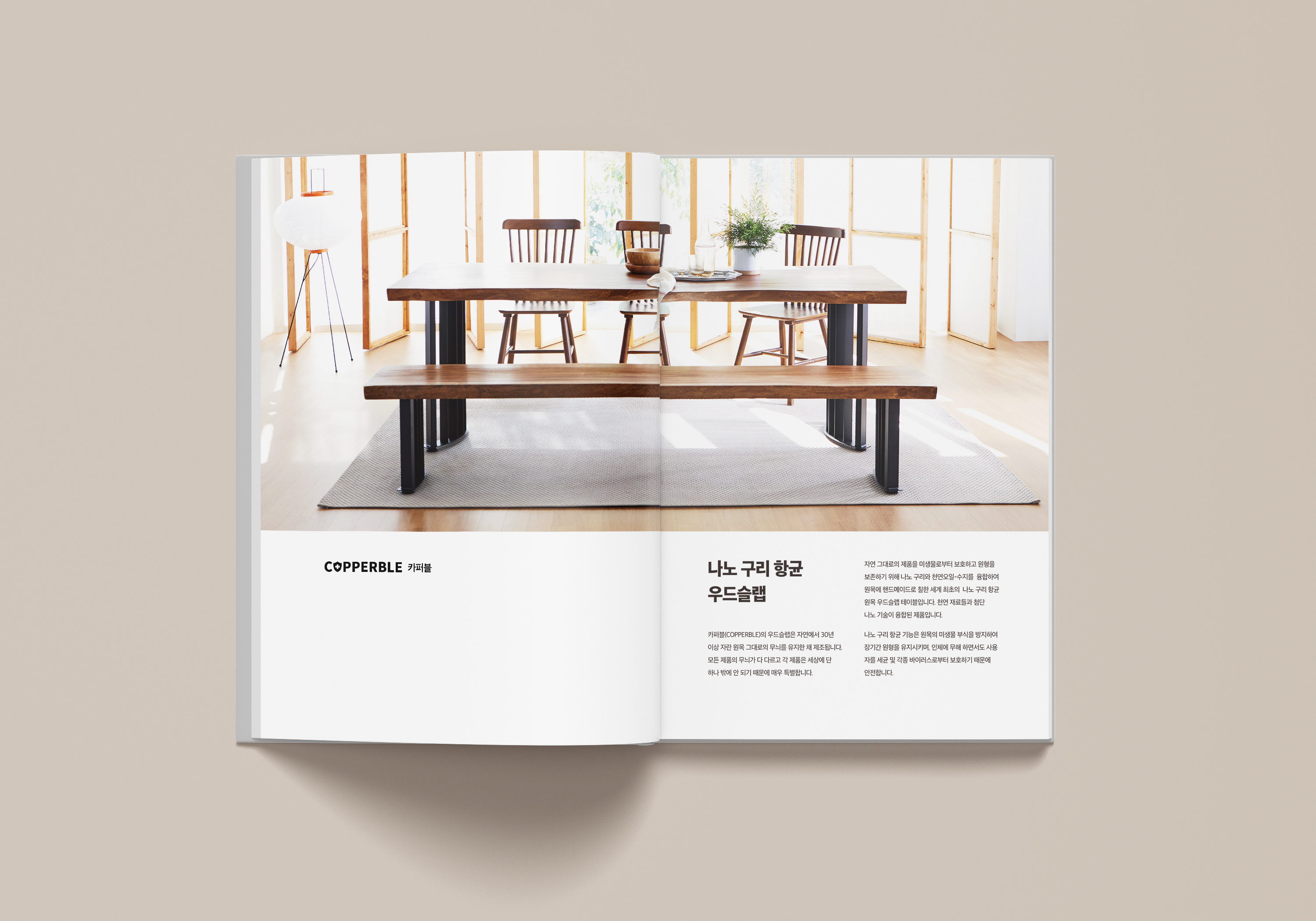 항균 구리 원목이라는 제품의 특징을 가진 가구 브랜드 '카퍼블' 입니다.