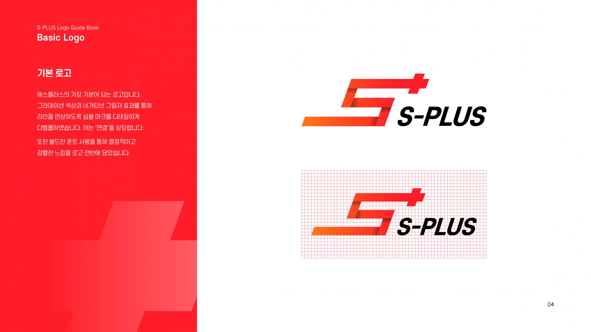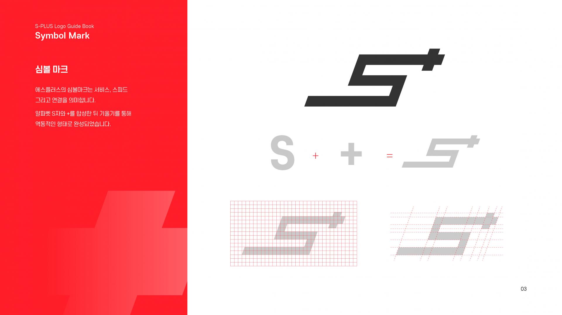 회사 명의 스펠인 'S'를 이용하고 플러스를 나타내는 + 기호를 합성하였습니다. 또한 기업의 컨셉인