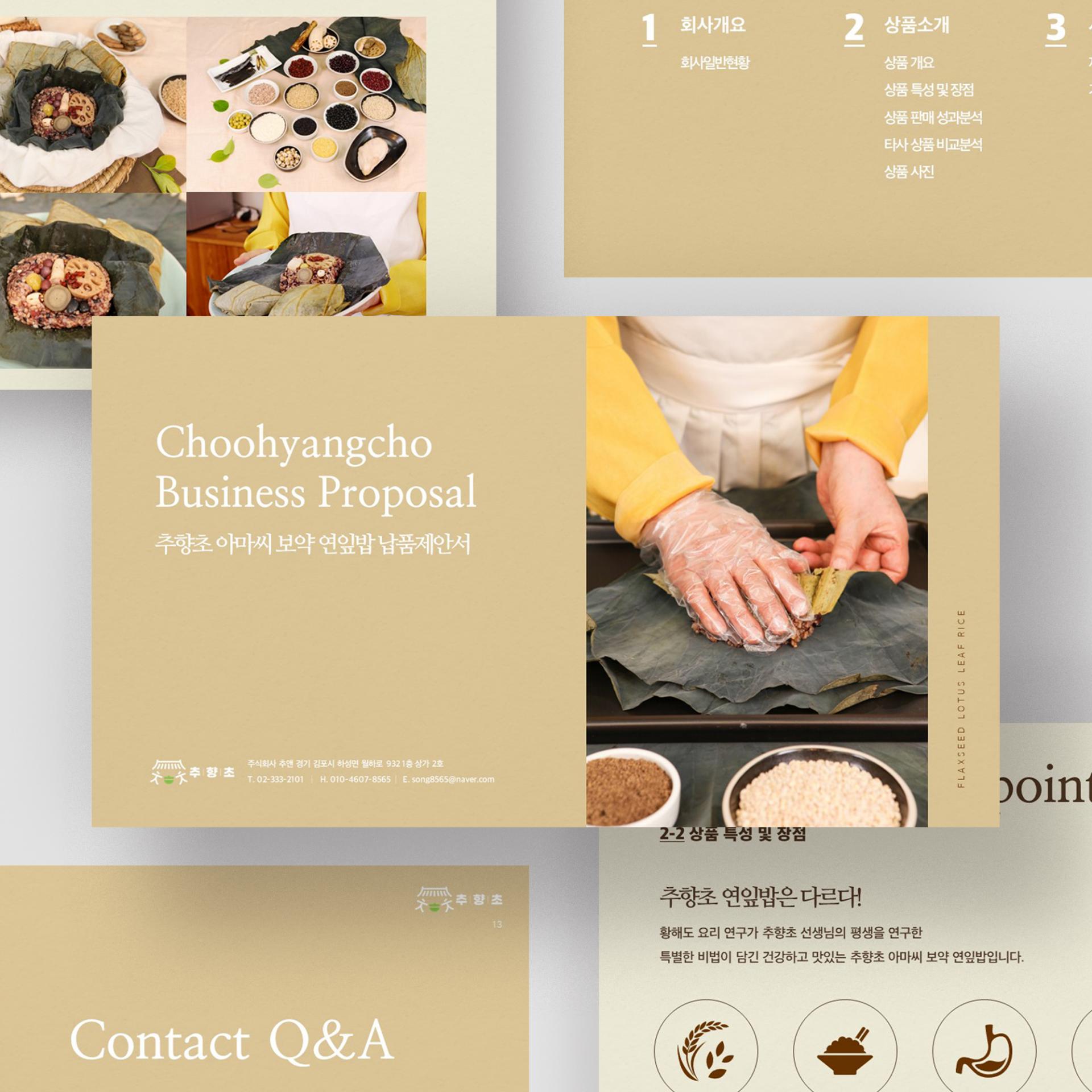 식품 브랜드 '추향초'에 아마씨 보약 연잎밥 납품제안서를 제작하였습니다.