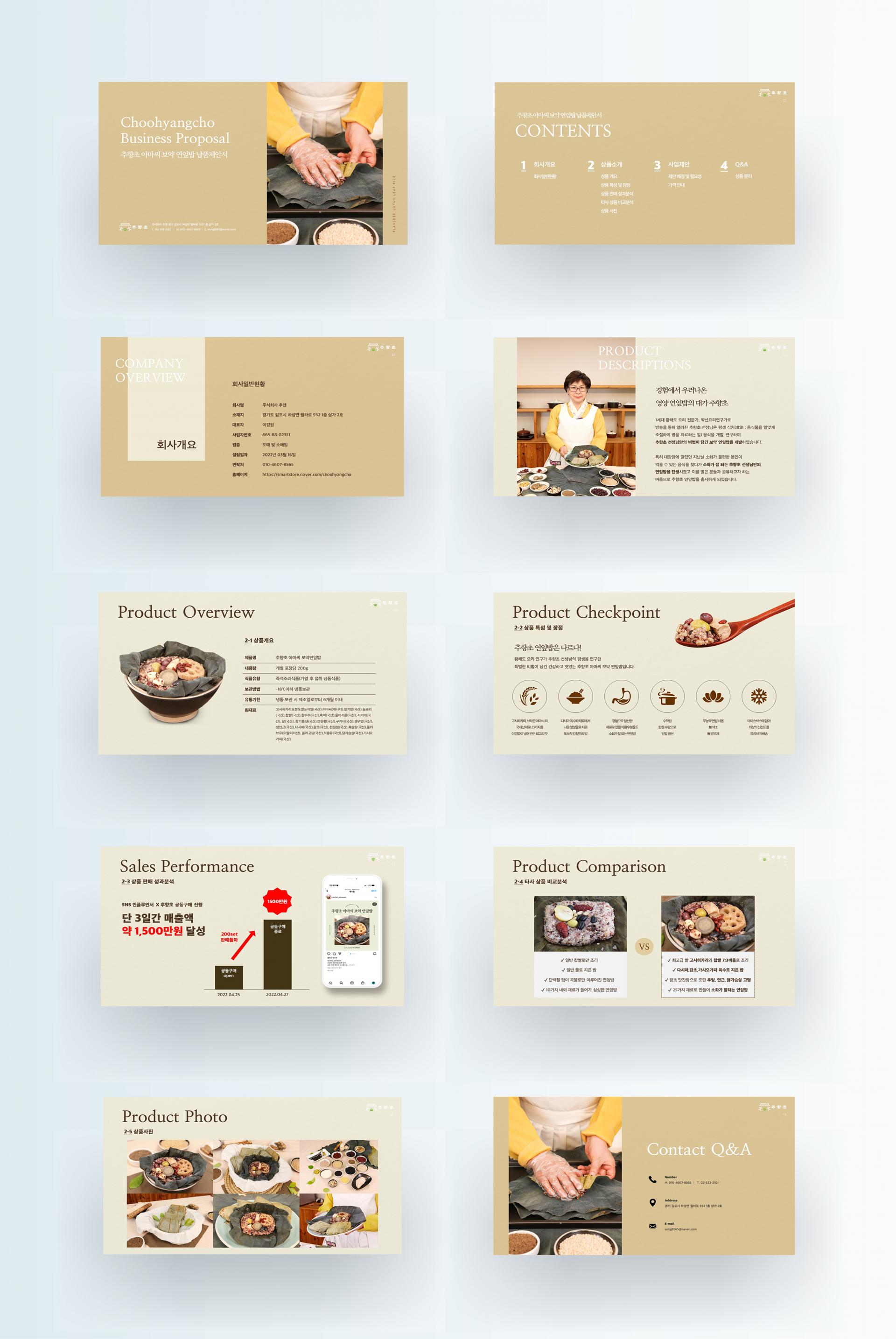 브랜드의 이미지를 제안서에 녹이기 위해 정갈하면서도 따뜻한 느낌의 디자인으로 템플릿을 제작하였고