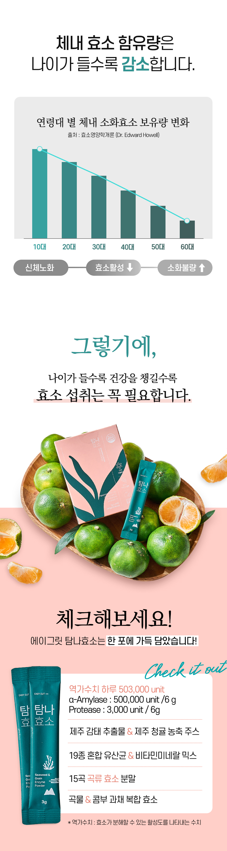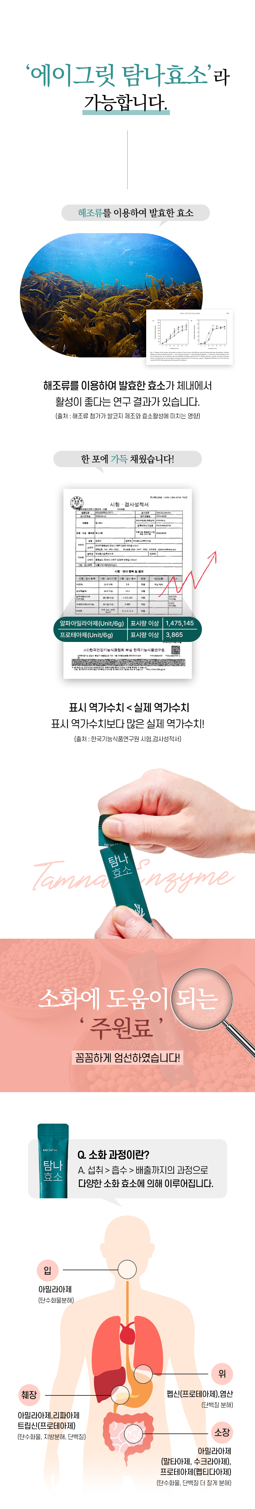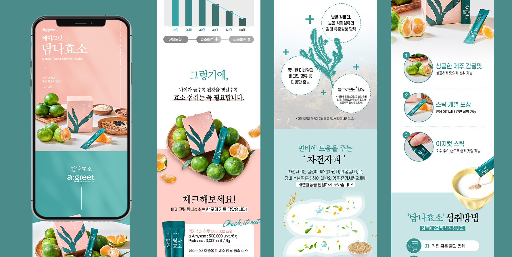 효소 건강식품 상세페이지 입니다. 패키지의 색감을 참고하여 심플하면서도