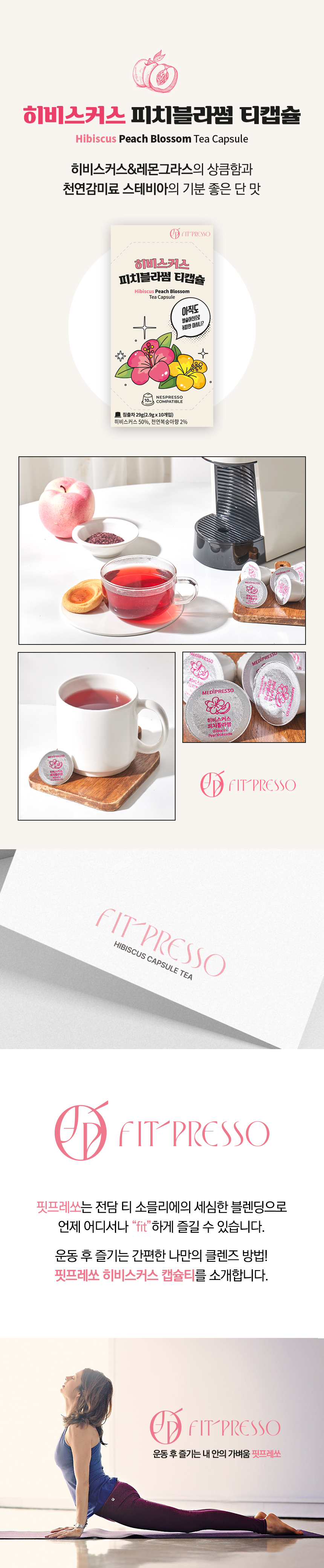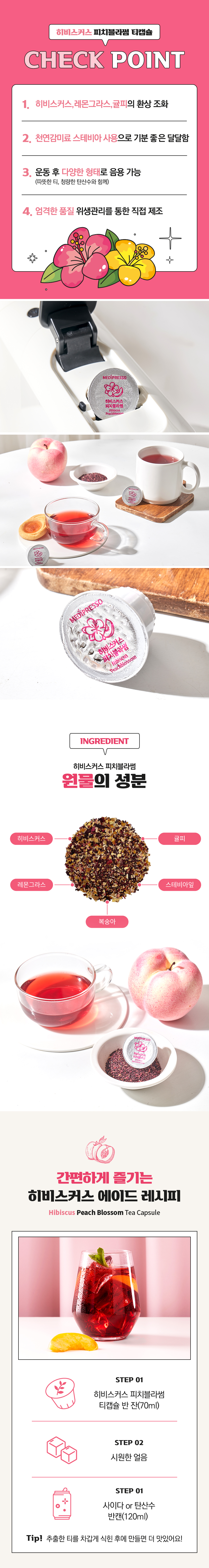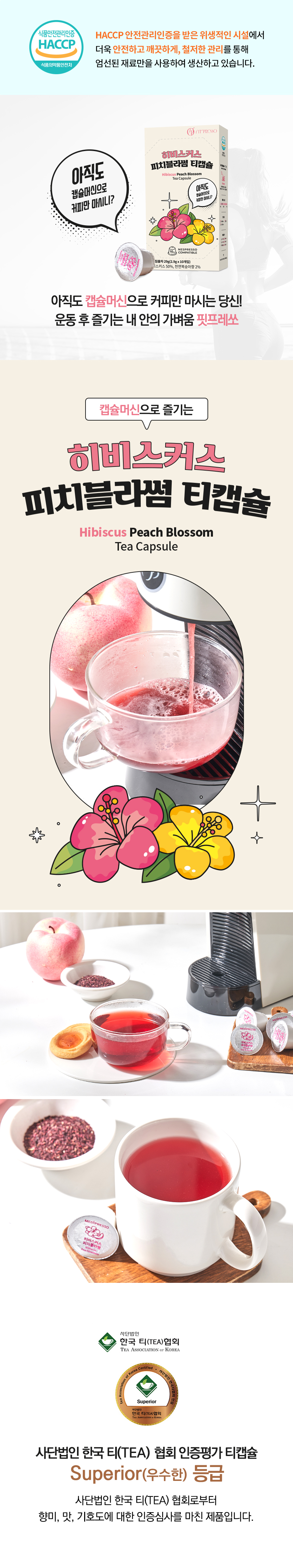 캡슐 티 식품 상세페이지입니다. 패키지의 톤에 맞춰 밝은 분위기와 일러스트에서