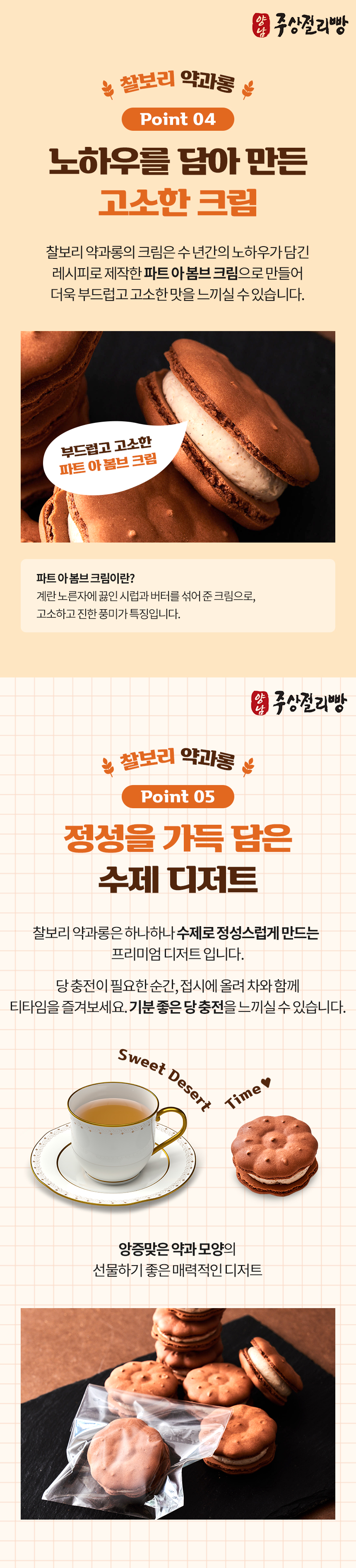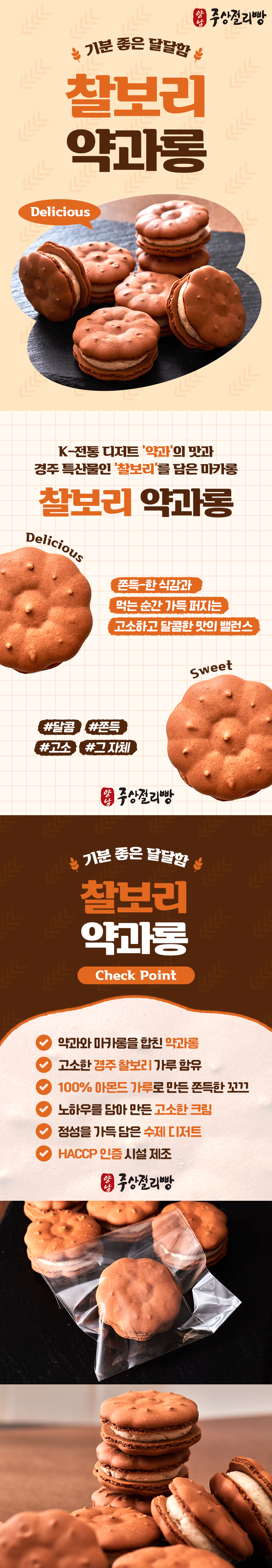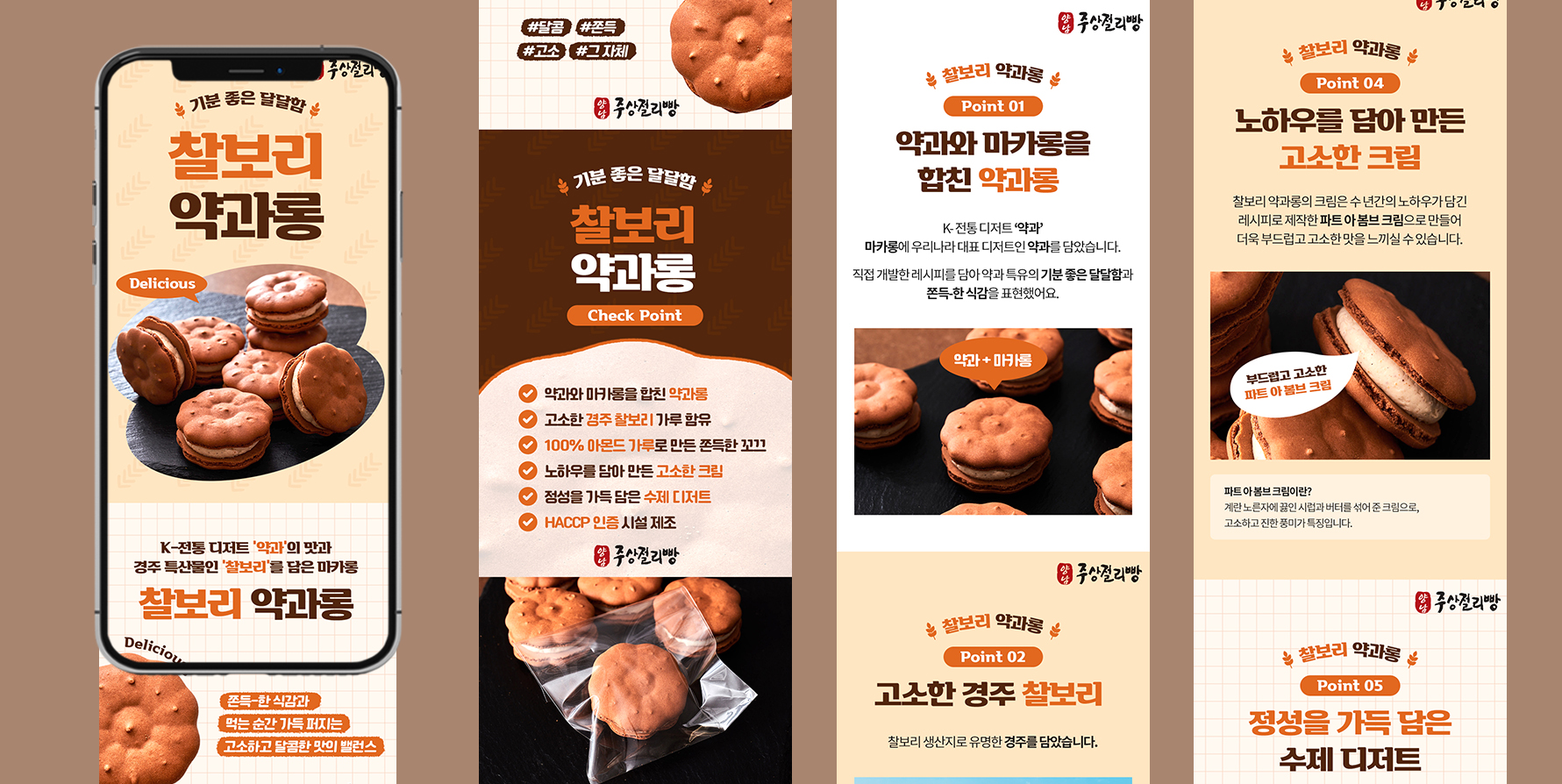 약과롱 디저트의 상세페이지로 제품의 색감과 맞게 브라운 계열을 사용하고 제품과
