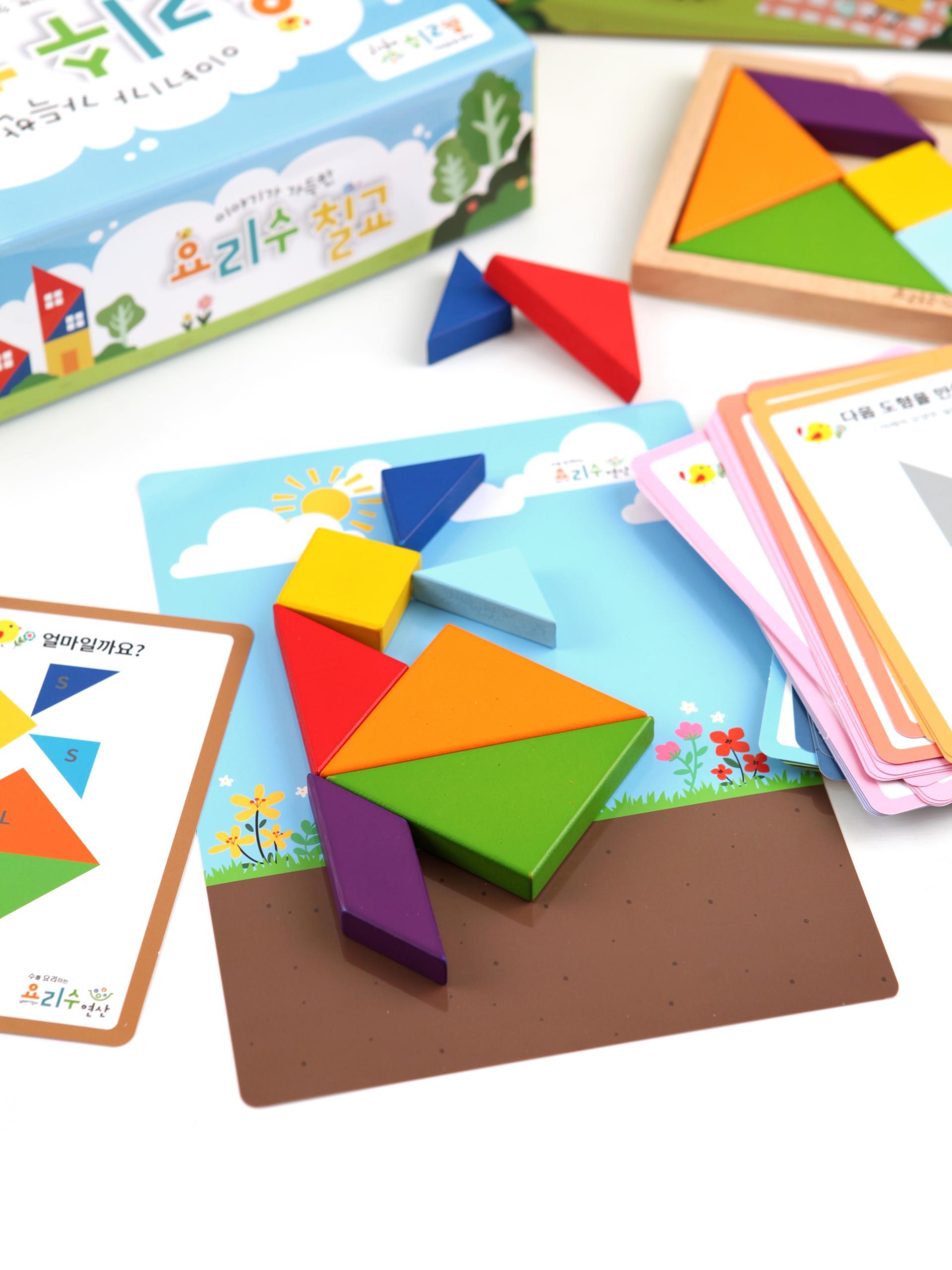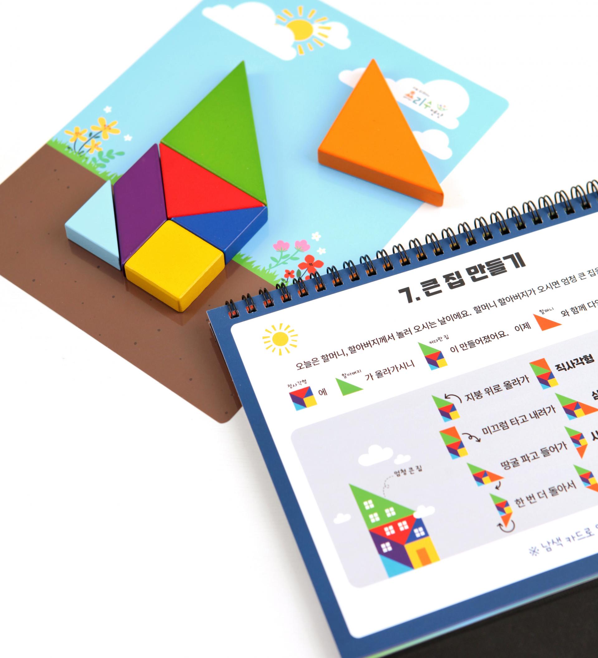 해당 상품을 칠교를 활용하여 공간지각력, 창의력을 향상시킬 수 있는 교구입니다.