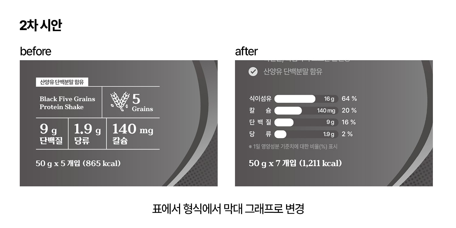 전면의 영양 성분 정보가 기존의 표 형식에서 막대 그래프