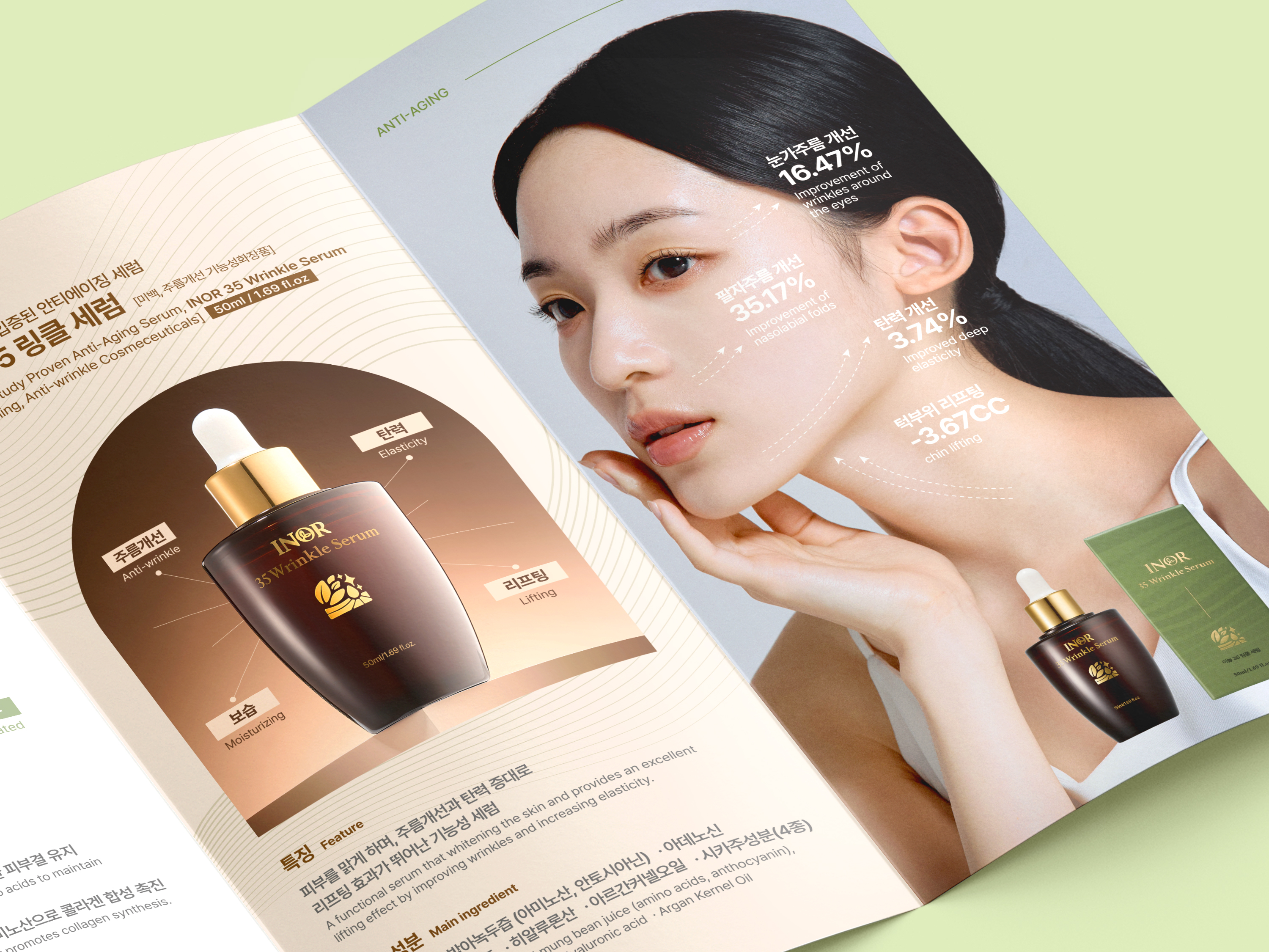 최근에 작업한 뷰티 화장품의 3단 리플렛 디자인 입니다.