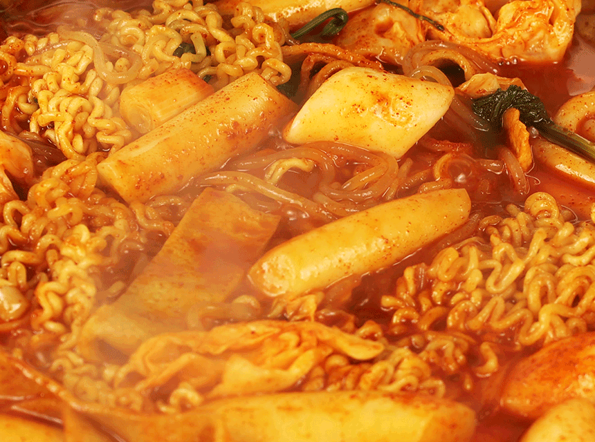 레드와 그린 포인트는 떡볶이의 매운맛과 신선한 재료의