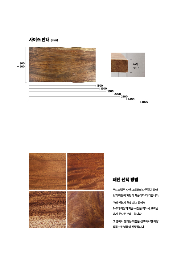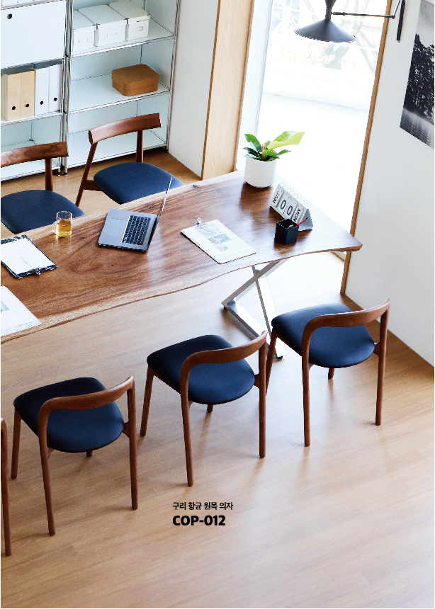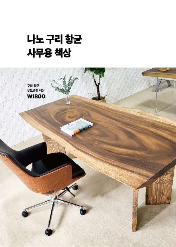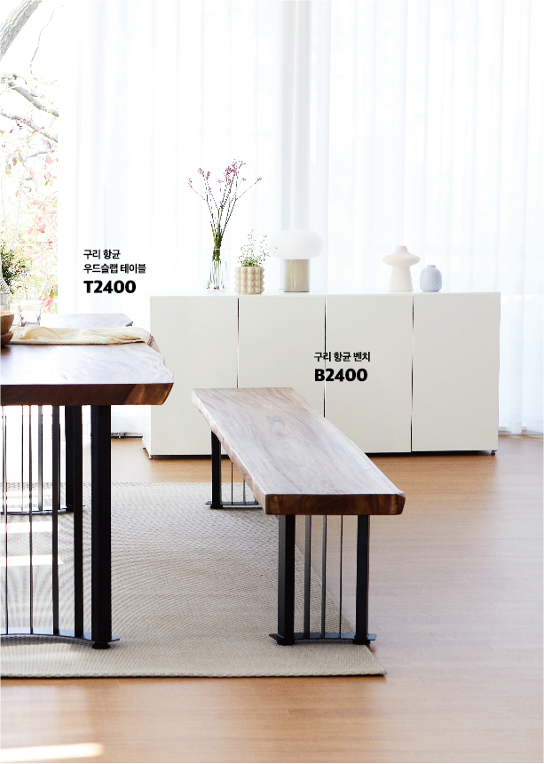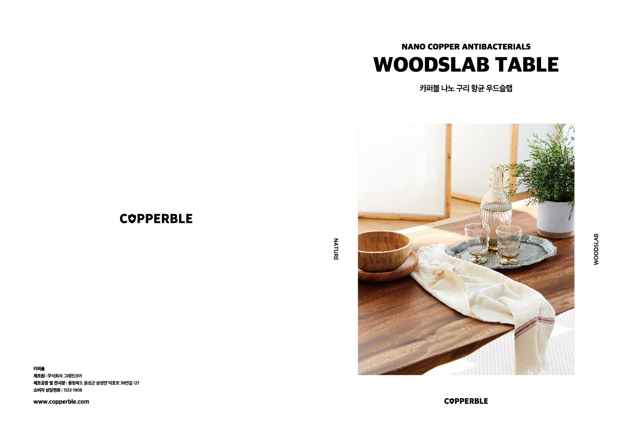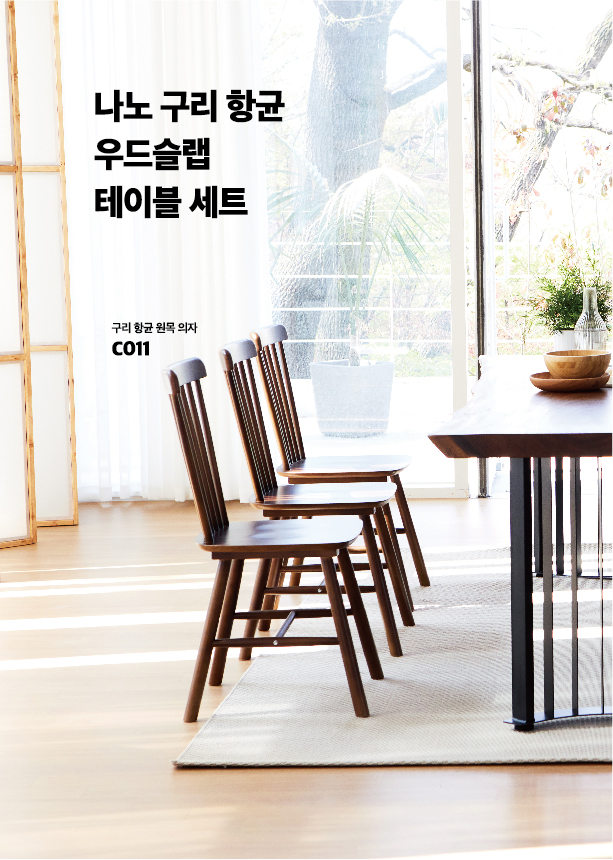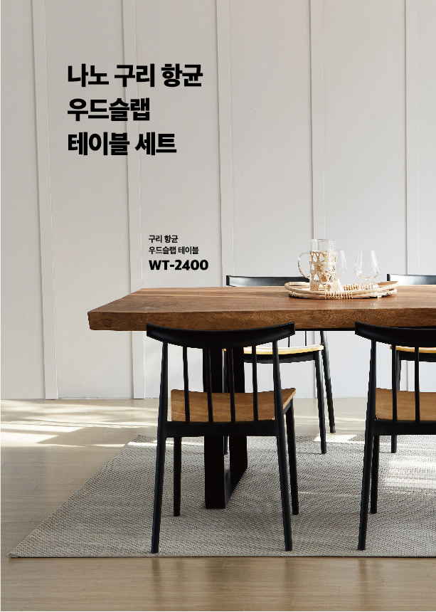 우드슬랩 가구의 고급스러움을 강조하기 위하여 심플한 화이트 백그라운드에 이미지 중심으로 레이아웃을 구성하여 카탈로그를 완성하였습니다.