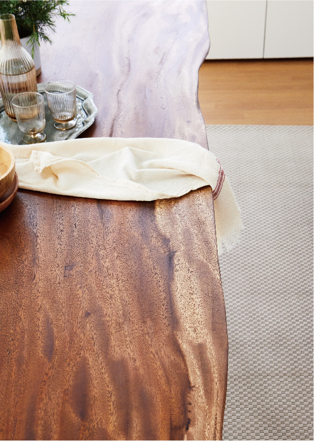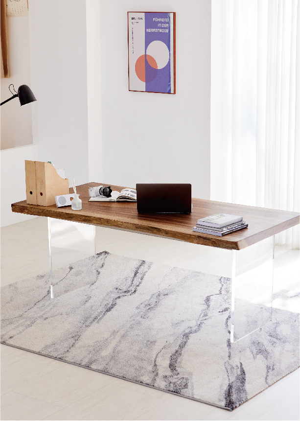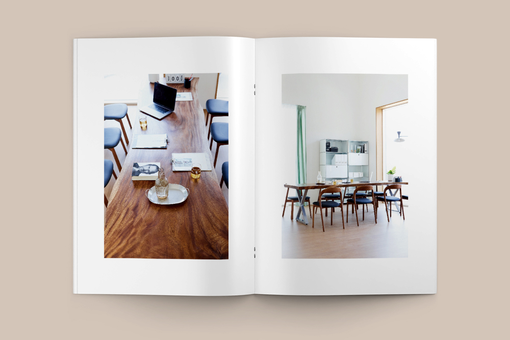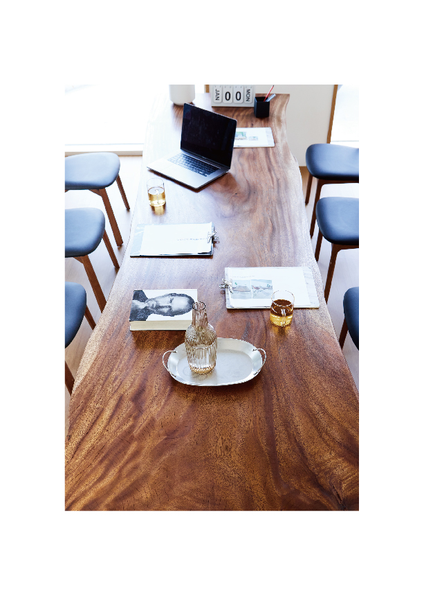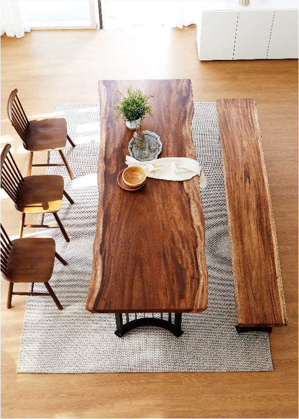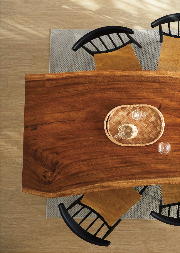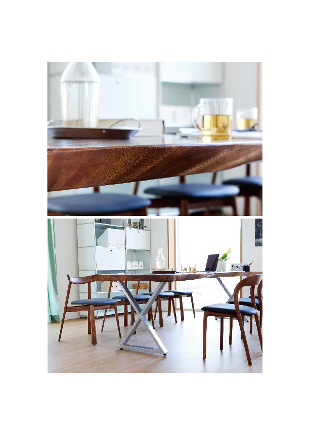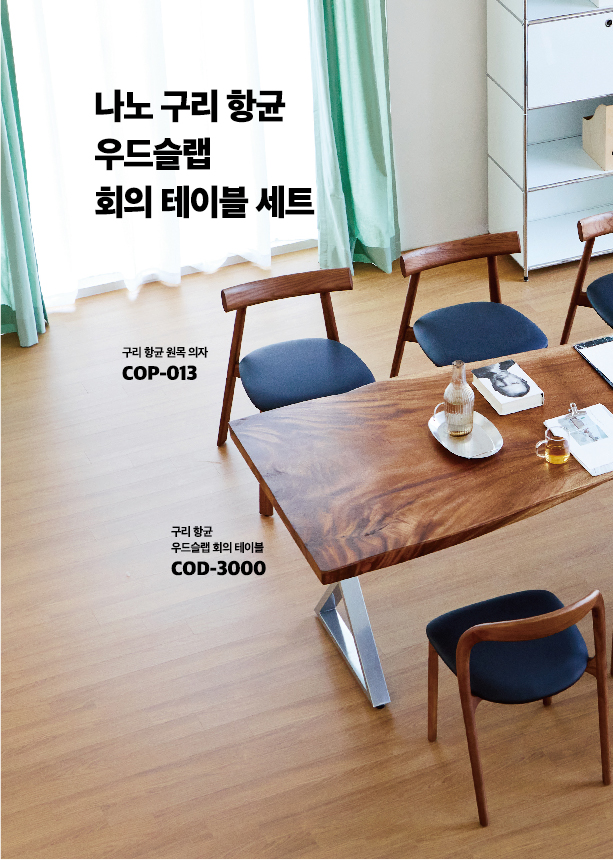 우드슬랩 가구의 고급스러움을 강조하기 위하여 심플한 화이트 백그라운드에 이미지 중심으로 레이아웃을 구성하여 카탈로그를 완성하였습니다.